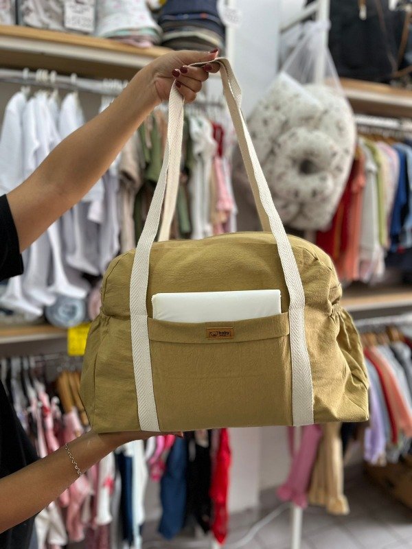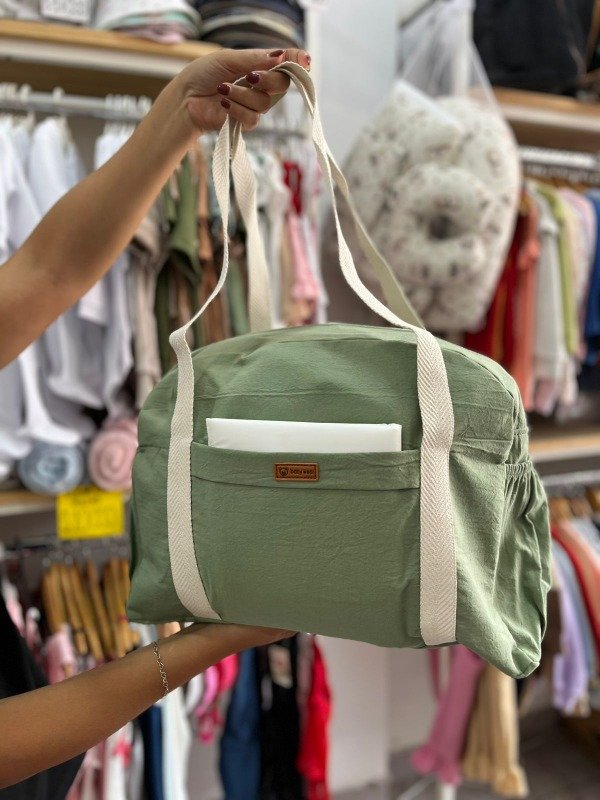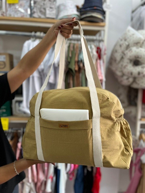 Bolso maternal práctico y cómodo, ideal para llevar todo lo necesario del bebé. Está confeccionado en tela resistente y liviana, con manijas reforzadas para transportarlo fácilmente. Su diseño amplio permite guardar pañales, mudas de ropa, mamaderas y accesorios sin problemas. Además, cuenta con un bolsillo frontal que facilita tener a mano los objetos más pequeños. Su estilo simple y moderno lo convierte en un aliado perfecto para salidas, viajes o el día a día con tu bebé.