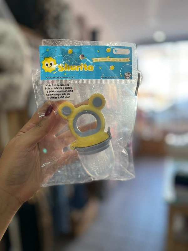Chupete con compartimiento para colocar frutas, verduras o alimentos blandos. Diseño de cierre seguro, material resistente y libre de BPA, facil de limpiar