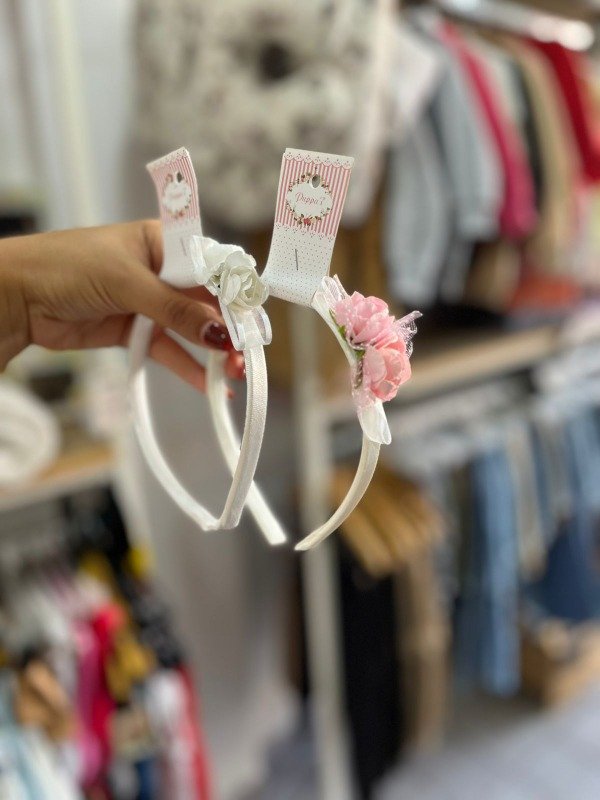 Vincha de Comunión con detalles de flores y tull.