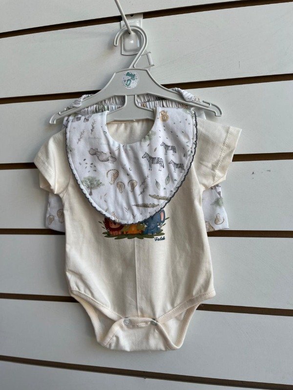 Incluye body de manga corta en algodón 100% con babero, transpirable e hipoalergénico, perfecto como primera piel & short que permite libertad de movimiento. Ideal para regalo de verano.