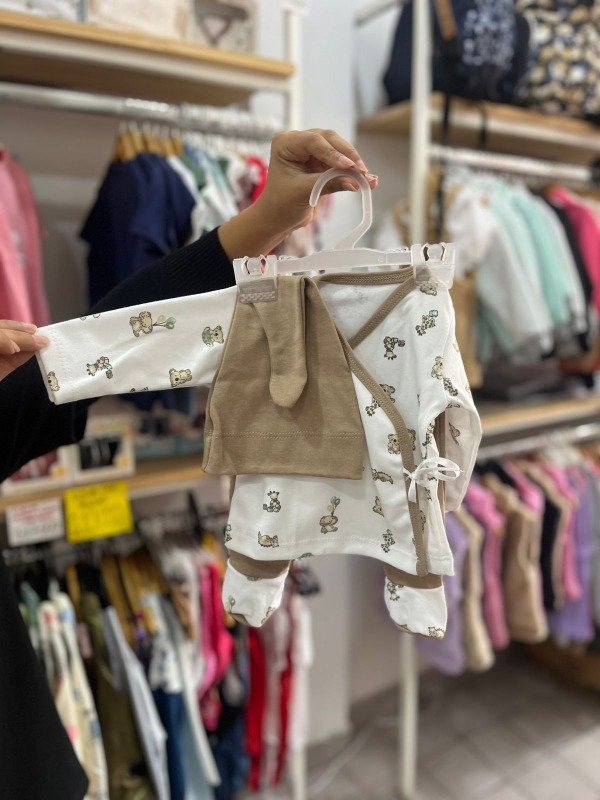 Ajuar - Mini Aventuras. Talle único que va hasta el primer mes del bebé aproximadamente.