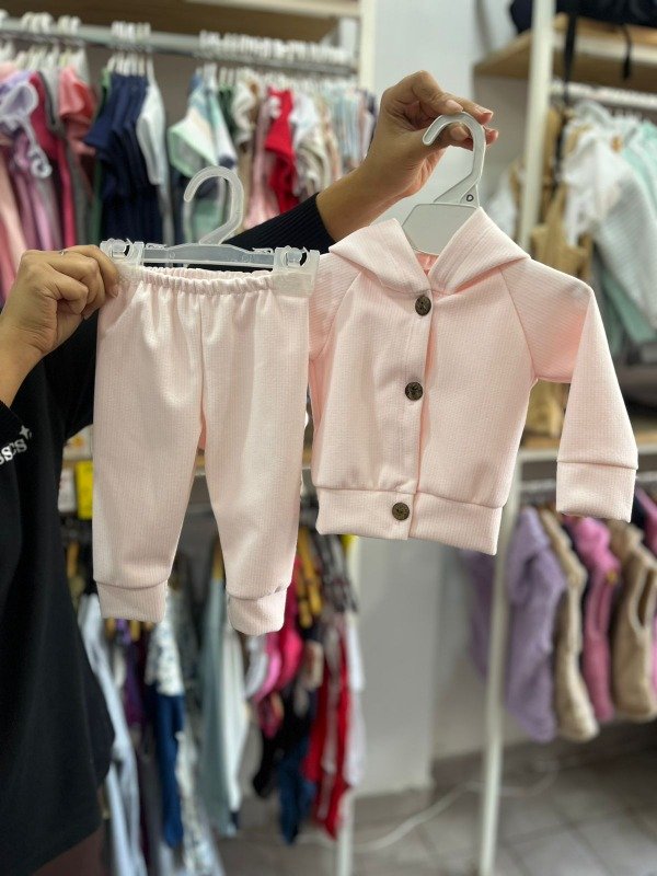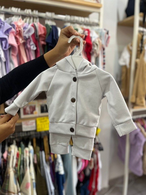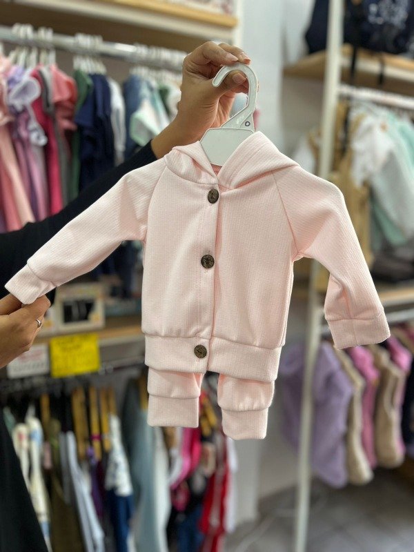 El conjunto incluye Campera con botones y gorrito, práctica y fácil de colocar & Pantaloncito con cintura elastizada para mayor comodidad.