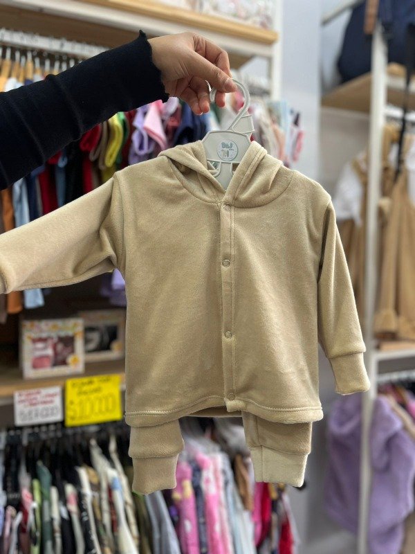 Ideal para los días frescos, este conjunto envuelve a tu bebé en suavidad y calidez. Confeccionado en plush de alta calidad, es delicado con la piel y perfecto para el invierno.