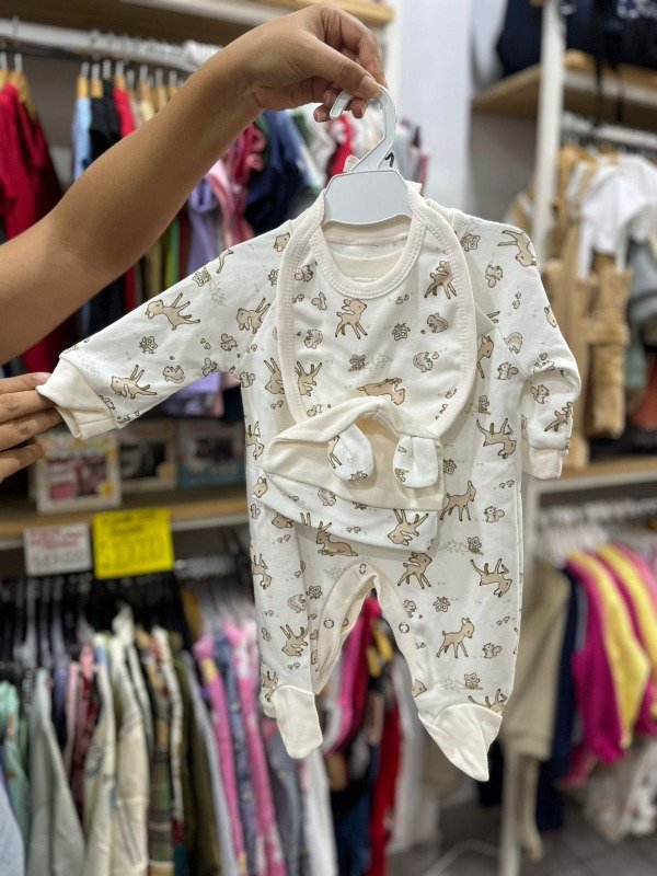 Este set de 3 piezas es ideal para los primeros meses del bebé, disponible en talle 0 al 2. Confeccionado en algodón 100%, es suave, transpirable y perfecto para pieles delicadas.